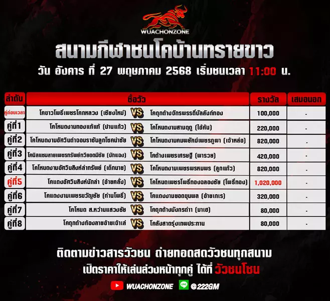 โปรแกรมวัวชน วันที่ 27 พฤษภาคม 2568
