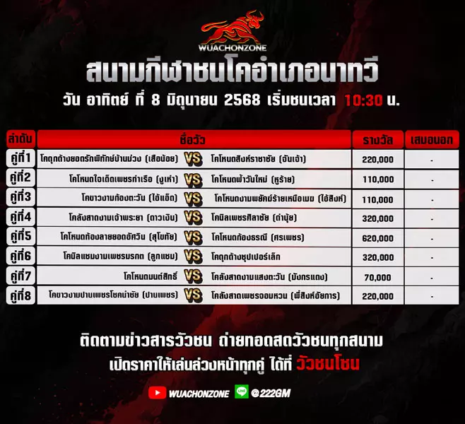 โปรแกรมวัวชน วันที่ 7 มิถุนายน 2568