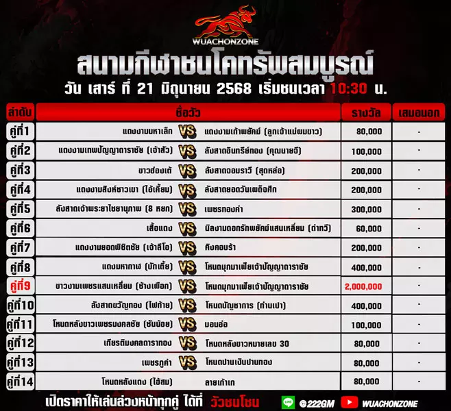 โปรแกรมวัวชน วันที่ 21 มิถุนายน 2568
